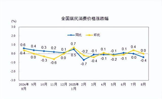 国家统计局9月10日发布的数据显示,8月份居民消费价格指数(CPI)环比持平,同比下降0.4%。工业品出厂价格指数(PPI)环比由上月下降0.2%转为持平;同比下降2.9%,降幅比上月收窄0.7个百分点。