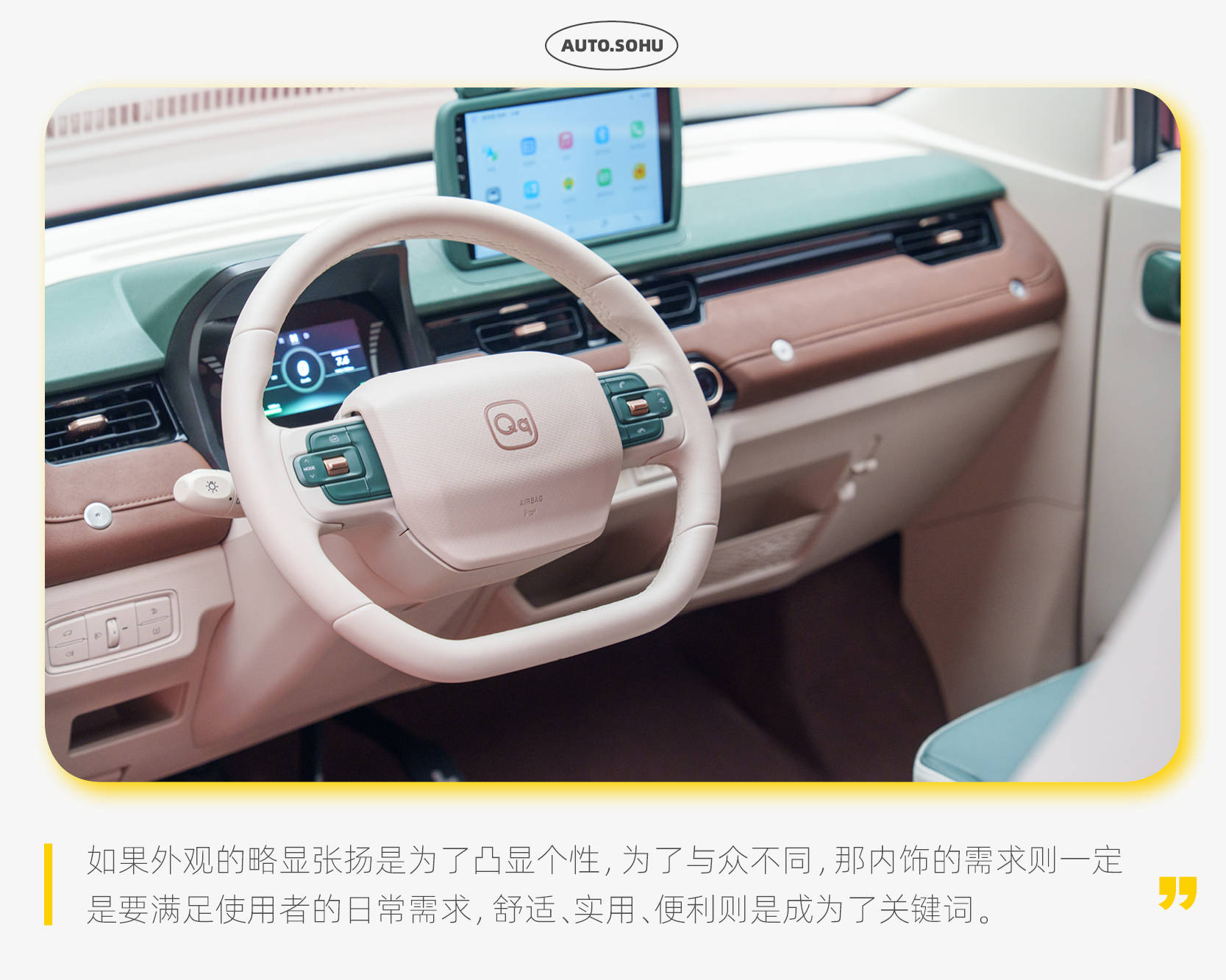 如果外观的略显张扬是为了凸显个性,为了与众不同,那内饰的需求则一定是要满足使用者的日常需求,舒适、实用、便利则是成为了必不可少的关键词。冰淇凌竞速版在这一点上相比此前的车型就有了不小的进步。