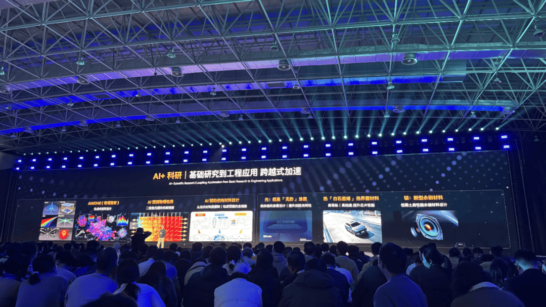 就拿这次发布会上说到的石墨烯热界材料来说,AI先模拟了2.6亿种石墨烯片层排布方案,筛出了3组同时满足高热导、低密度的微观结构,最后实验室按图索骥,一次合成成功。