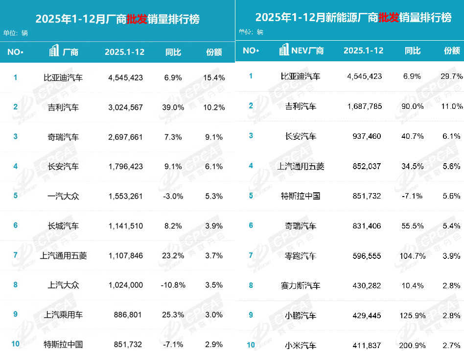 2025年,中国车市在价格战与新能源转型的双重压力下呈现分化格局。