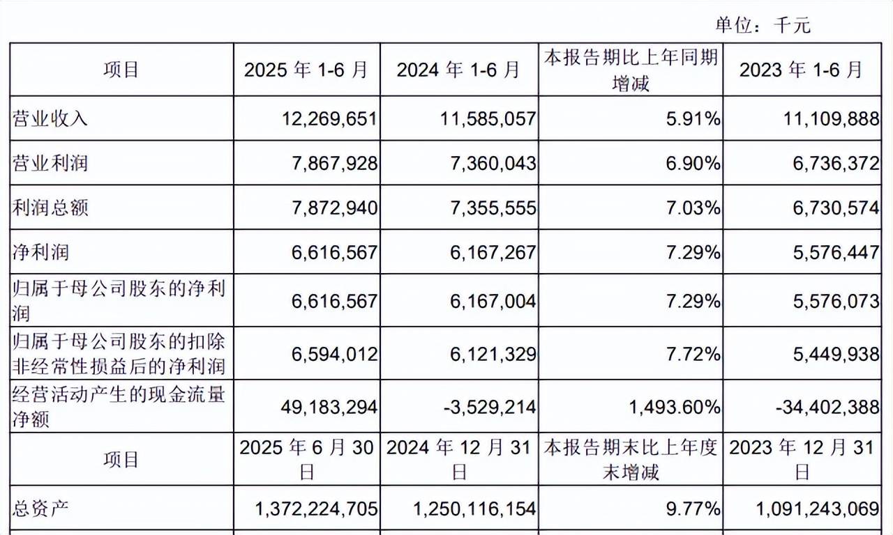 财报显示,2025年上半年,成都银行实现营业收入122.70亿元,同比增长5.91%;归属于母公司股东的净利润66.17亿元,同比增长7.29%。从表面看,这两项核心指标均保持正增长,但若结合过往业绩轨迹深入剖析,其增长动能略显不足。然而,该行归母净利润的同比增幅在2022年至2024年同期分别为31.52%、16.22%和10.60%,呈现出连续且明显的增速放缓趋势。