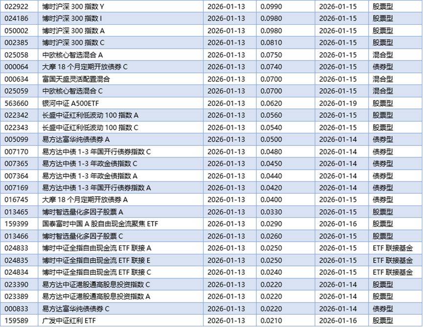 三、01月13日新发基金一览(不包含传统封闭式基金)