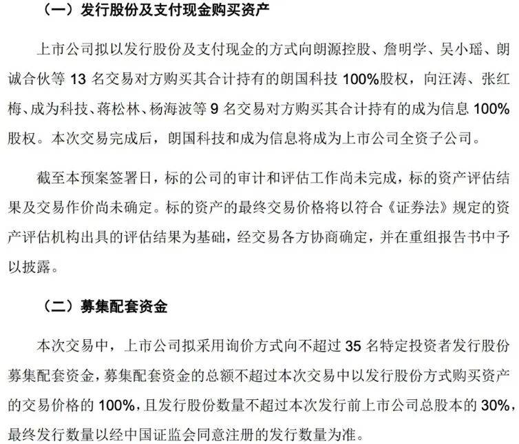 2025年10月19日晚间,深圳市亿道信息股份有限公司(下称亿道信息,001314.SZ)发布了一则交易预案显示,公司拟以发行股份及支付现金的方式向朗源控股、詹明学、吴小瑶等13名交易对方购买其合计持有的朗国科技100%股权,并向汪涛、张红梅、成为科技等9名交易对方购买其合计持有的成为信息100%股权,同时募集配套资金。此次交易完成后,朗国科技、成为信息将成为亿道信息的全资子公司。截至该预案签署日,相关审计及评估工作尚未完成,标的资产交易价格亦未确定。